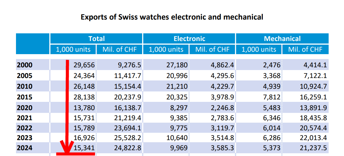 Структура спроса изменилась - в 2000 году швисюнчики покупали как инструмент, сейчас это хуй знает что, но явно не часы.