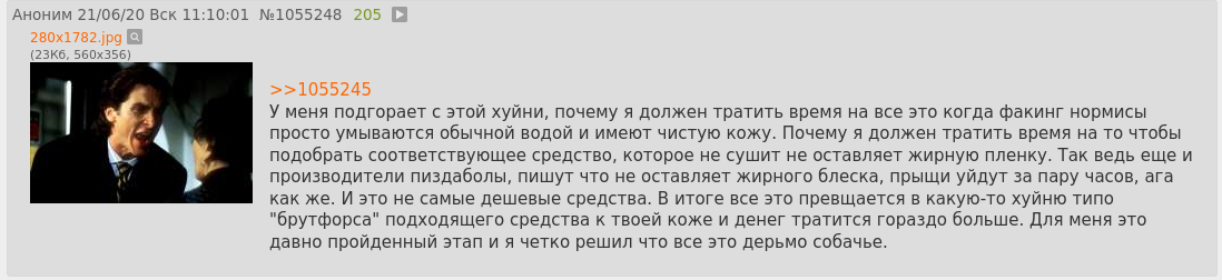 Никогда особых проблем не было, но нет, блядь, решил зачем-то ввязаться в эту хуйню Взял умывалку+увлажняющую хуйню — через несколько дней выебало пол лица прыщами Нахуй и в пизду, лучше простой водичкой умываться