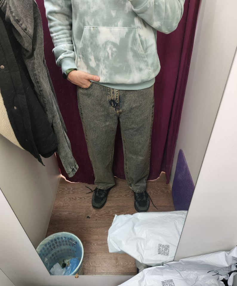 Меня бесит то, что ткань топорщится по внутреннему шву штанины, там, где должны быть приводящие мышцы бедра, хоть это и слим фит модель. На фото из-за камеры и освещения проблема чрезмерно подчёркнута; тем не менее, я это вижу и меня это раздражает. Для тёлок такая посадка, ясное дело, была бы неприемлема; а стоит ли мне заморачиваться насчет этого?