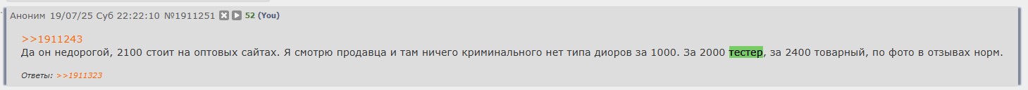 >>1912814 > Сигара/Сигар Коммандера Быстро улетает? Так раздражает, когда два почти одинаковых фрага выпускают и хуй пойми какой из них брать, вроде Сигар 1 более популярен, так ведь? А второй менее сладкий, если отзывы не врут. Кстати, некоторые пишут, что на дабл виски похож. Стало быть покидает быстро. >>1912815 > На форчане обычно ещё вторую картинку постят, лучше по ней ориентироваться У тебя не осталась? Если найдешь скинь пожалуйста в тред. Я с частью знаком, просто вот решил пробелы восполнить.