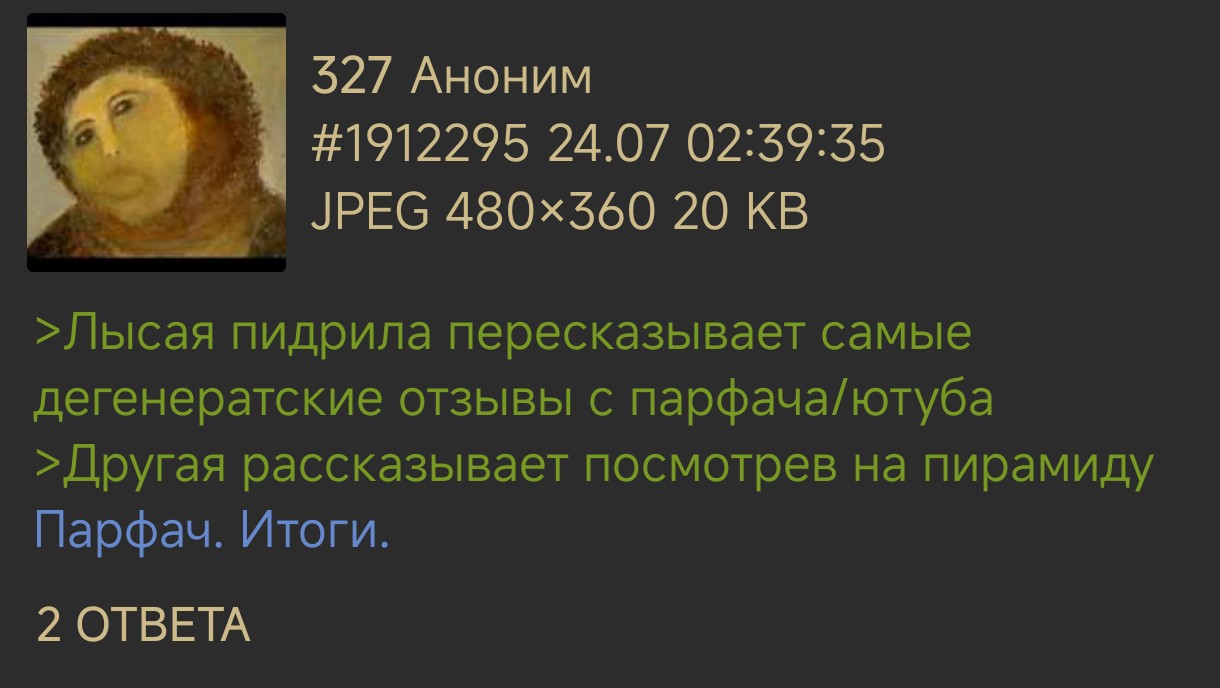 >>1913426 Дурачок, лор учи. К-шиз сидел тут ещё до того как ИНВ снизошел на Фа (неофициально он с 19 года начал тут сидеть, а под псевдонимом этим с января 23 года). Затем пропал и в прошлом году вновь появился ненадолго, аналогичное нытье и подобные посты такие же были. И. тогда пытался помочь нашему Горемыке парфюмерному. Так как сам паранормальщиной увлекается и является завсеглатаем Снача, предположил, что на Горемычном проклятье какое-то сидит. Надо ехать в Швецию и там в библиотеке искать инфу. Горемыка не выдержал и все равно ливнул тред.