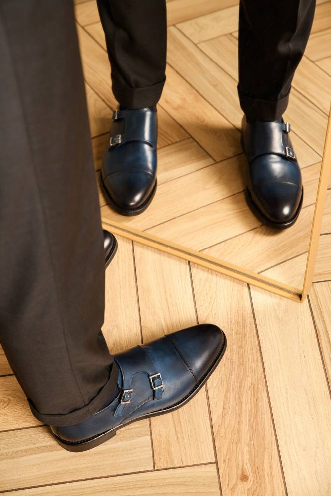 С чем ты собрался сочетать синие ботинки? Это не универсальная вешь, они в гардеробе могут быть пятыми по счету, но не единственными Либо у тебя один формальный лук в котором ты ходишь куда там - на работу в шарагу (и все думают, что ты неделями не стираешь одежду)