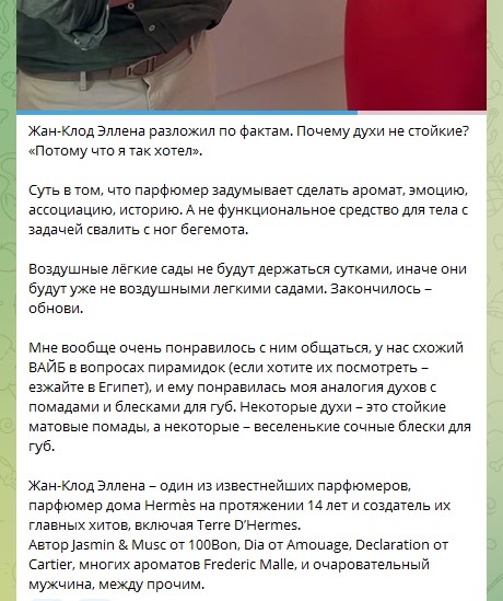 Если ты нашёл тот самый парфюм от которого реально кайфуешь, то не слушай никого (блогеров или анонов в этом треде). Не позволяй никому влиять на твоё мнение. Просто кайфуй и получай эстетическое удовольствие.