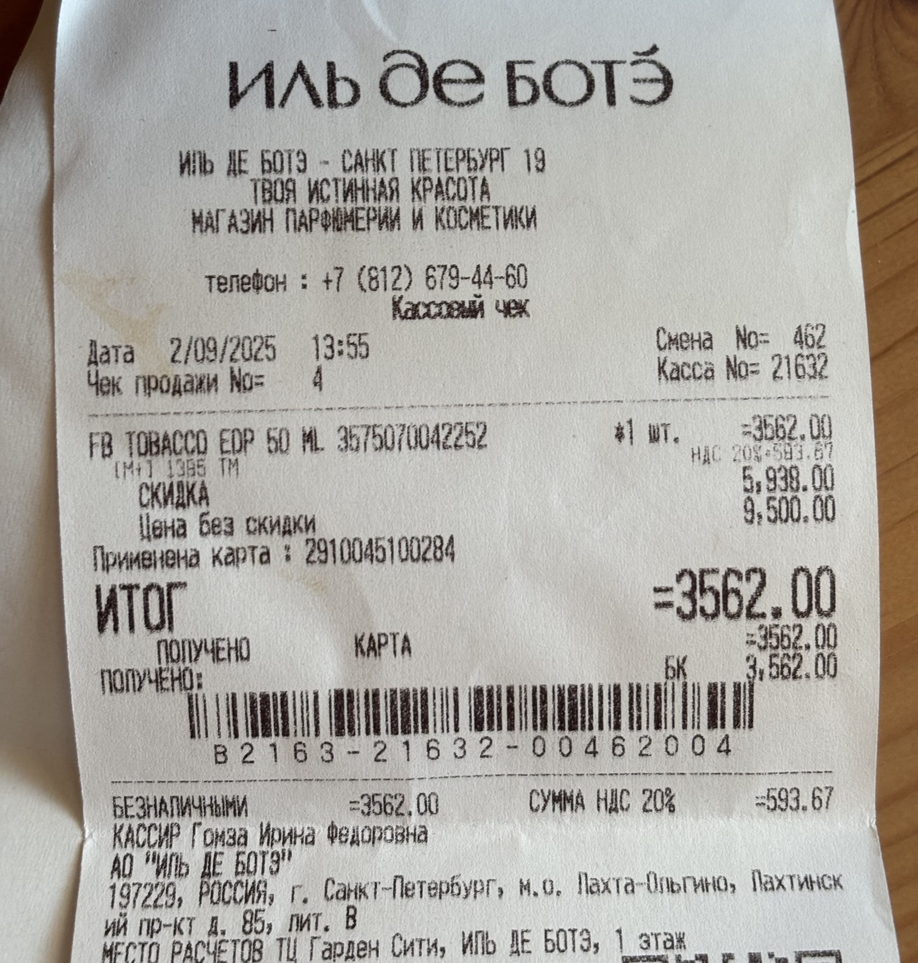 >>1920750 > хз на озоне заказал Такое опасно на озоне брать, на этот бренд невообразимое количество подделок. Только если на 100% уверен в продавце. Там еще сложно отличить подделку от оригинала, т.к. сам бренд не особо заморачивается. Его лучше брать только в крупных сетях типа ЗЯ или офиц. точках продаж. Мне вот Блэк Пеппер зашел, буду брать 10 мл.