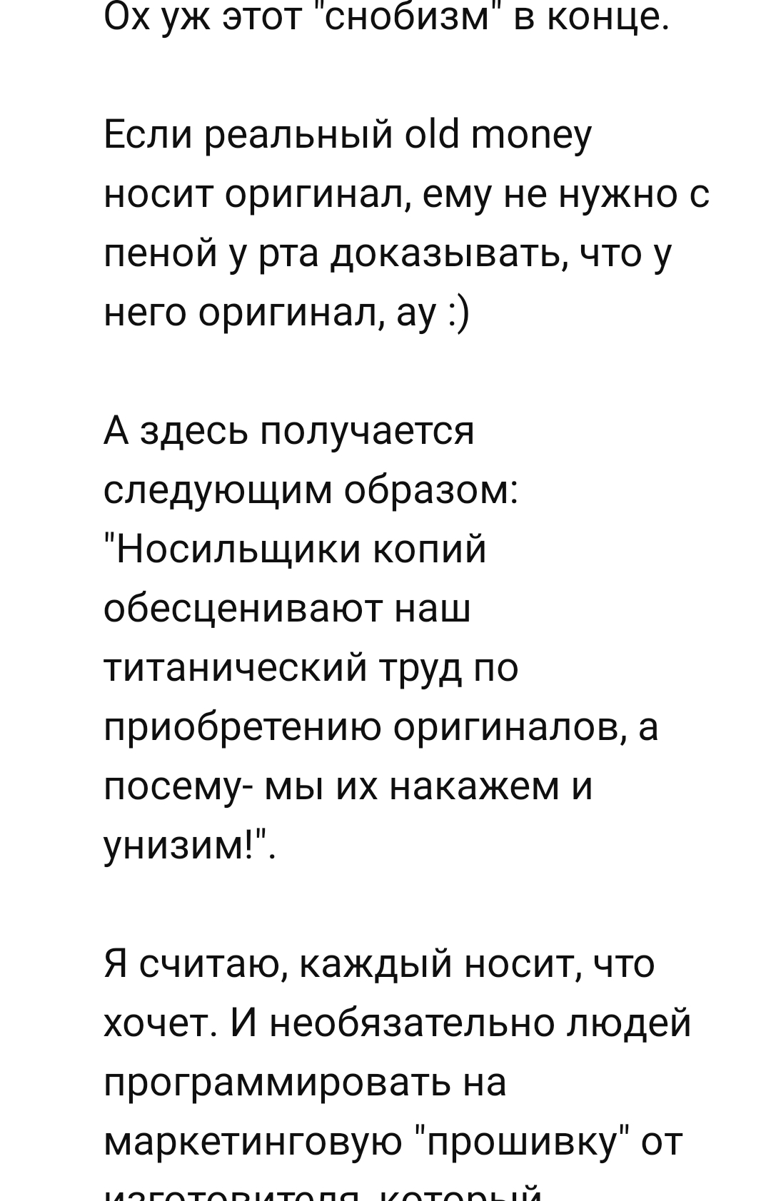 >>1921862 Ты рассказываешь как нищие духом воспринимают буквы брендов, но вопрос, как мне кажется, был о другом: как целевой контингент разбирается в какчестве и престижности изделий как таковых? Или там глухо, не зная бренда впадают в ступор и мычат тоскливое?