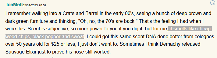 Диор О Саваж Колонь - вот эту хуйню я не понял совсем. Как будто что-то другое налили, потому что оно пахнет как Диор Ом Колонь. Т.е. лёгким минерально чистым-мускусным цитрусом, ну или пахнет коркой и белой штукой грейпфрута. Не ярко, просто уныло чисто мускусно. Ничего общего с О Саважем.