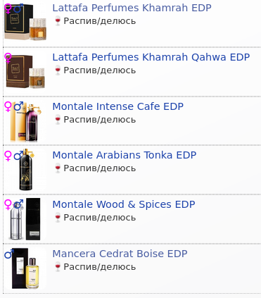 >Montale Wood & Spices Церковный такой запах. Ладана мало слышу, пахнет скорее медовой свечкой и церковной лавкой. Понравился. Хз к чему тут "spices" в названии, специи не указаны в нотах, и в аромате их не слышно.