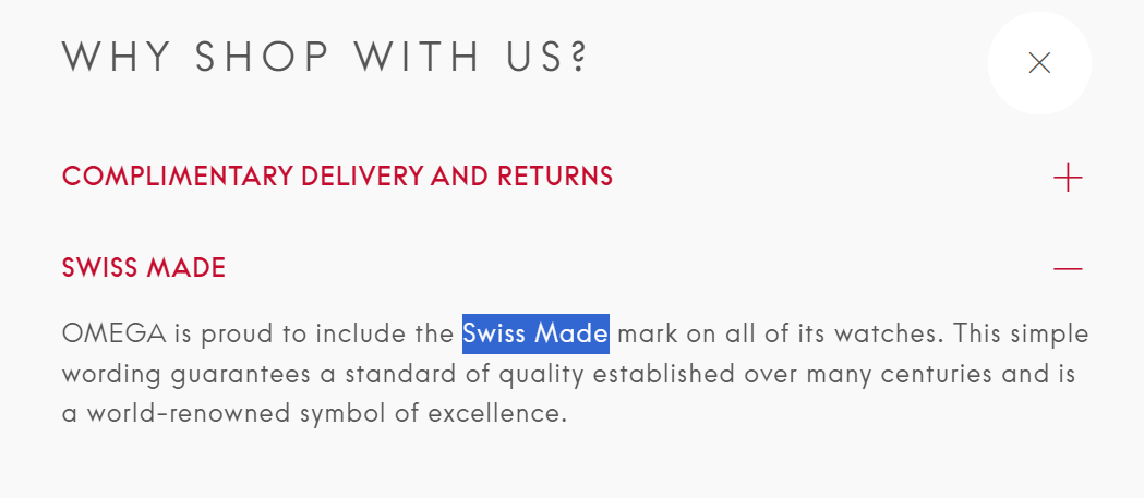 То есть сайт омеги - это под кроватью, и что там написано swiss made это еще ничего значит. В челом спорить сложно, так и есть, но всё-таки: на сайте омеги ни слова о том, что маркировка swiss made это когда под кроватью обещают. Там про какчество какое-то пишут, гарантии, лол.