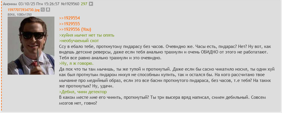 >>1929302 >>1929303 >истеричный зассыха с гомофантазиями семенит от злости Энурезный долбоёб это реально новая веха в будке. Такого мудака там ещё никогда не было. А ведь всё из-за того, что сасию говном обозвали, вот ведь дебил ёбаный.