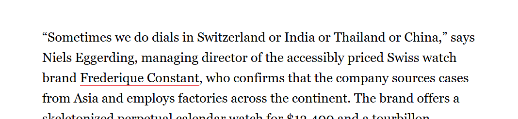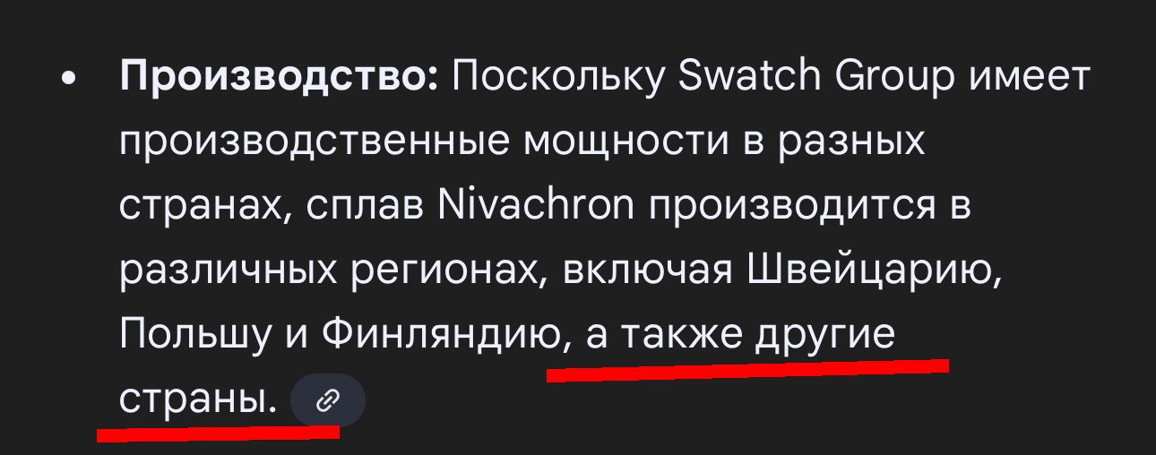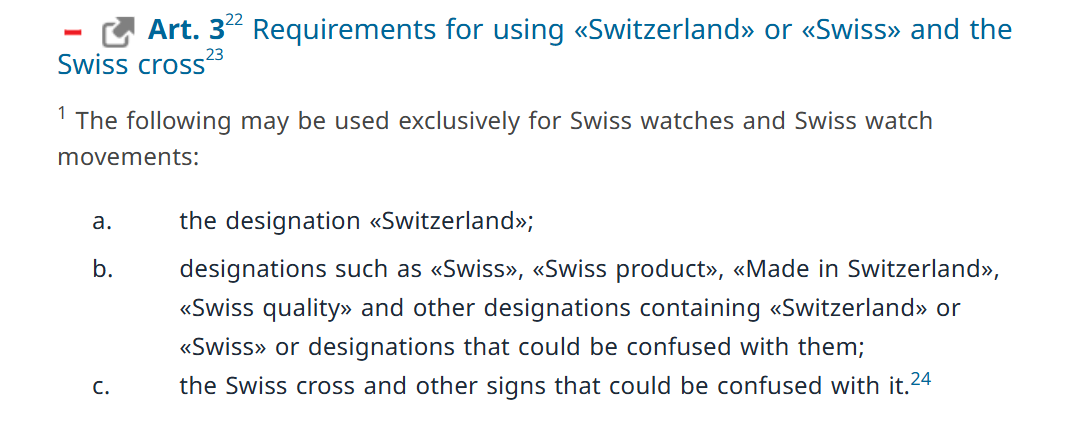 Swiss Made, как любое географическое наименование происхождения товара, определяется соответствующим законом, это самоочевидные вещи. Со своей стороны найди на скрине обещание производить линки для браслета в Швейцарии пожалуйста.