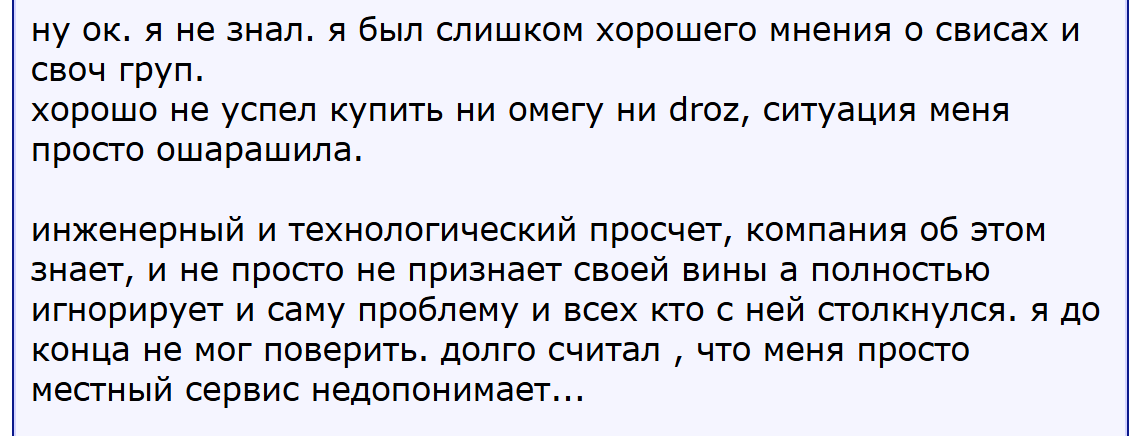 Ну что за неприличный аутотренинг. Понятно с ним легче отгораживаться от реальности, но голову из песка следует вынуть и повернуть в сторону статистики: продажи swiss made рухнум во всех сегментах, кроме сегмента дорогих фетишей. Но там своя атмосфера, спекулянт на шаромыжнике и эстетом погоняет. В сегментах же, где товар предполагает использование по назначению, swiss made'у карачун. Не хотят люди несвежий индусячий примитив за идиотские деньги. Говно-с.