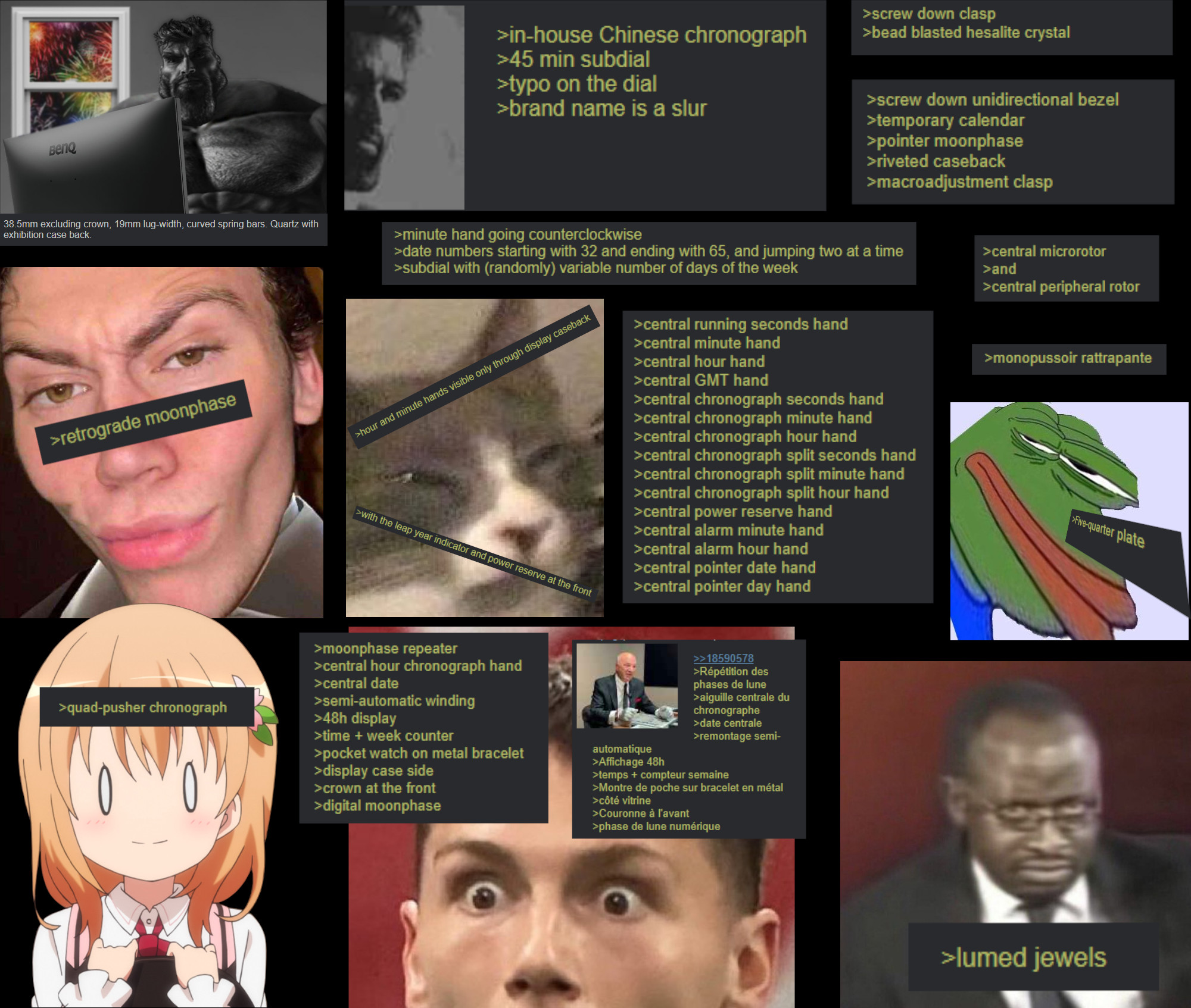 >>1948287 Ваше в ахуе от этого стилька субмариновского - здоровенная катушка, которая сейчас годится только чтобы 10 мин сварить макароны засекать, ни с чем реально из одежды не сочетается (кроме гидрокостюма нахуй) и бля половина лухари часов в этом стиле слелано. Ладно гмт еще куда ни шло, но вот минутный безель ирл ужасен и бесполезен