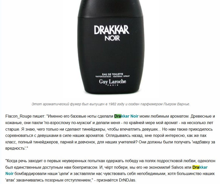 Круто. Спасибо! Кстати, на днях в общей куче пришёл и отливант Драккар Нуар. Ну и чё-то не вонючий он оказался. По мне пахнет как простой мужской аромат, только ещё и с мятой. Трепета не вызвал, но, вроде, и не должен был.