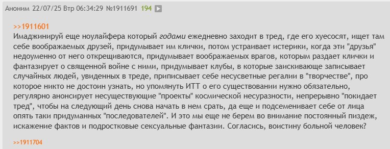 >>1950473 Да. Его упоминали и он пост умудрился снести, видимо зарепортив, хотя в том не было ни оскорблений, ничего такого. >>1950438 Как же я над ним угораю, настолько ошизел, что пытается снести неугодные посты вайпом.
