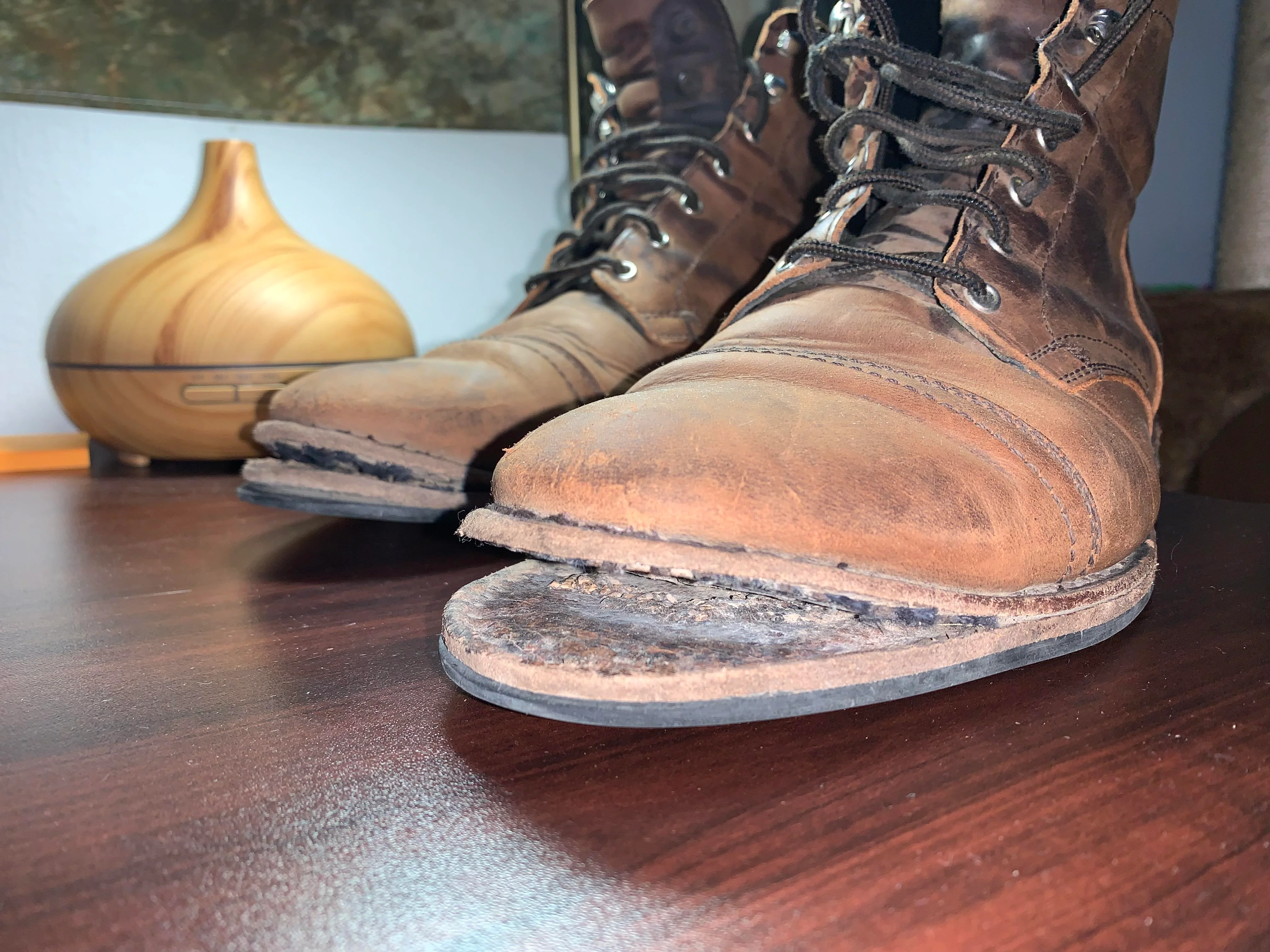 Чё за хуйня у меня с подошвой происходит? Чё она расслаивается? Пиздец какой-то. И ещё пятка сносилась, теперь скользит на слякоти при каждом шаге. Мне кажется я больше двух лет ни в одной паре обуви не проходил. Ходил в дешёвой обуви, ходил в более дорогой, всё снашивается за год-полтора. Посовемтуйте ремонт обуви в СПб. Ближайшие подвалы говно. У Эвкатора верх хороший, но подошва быстро снашивается.