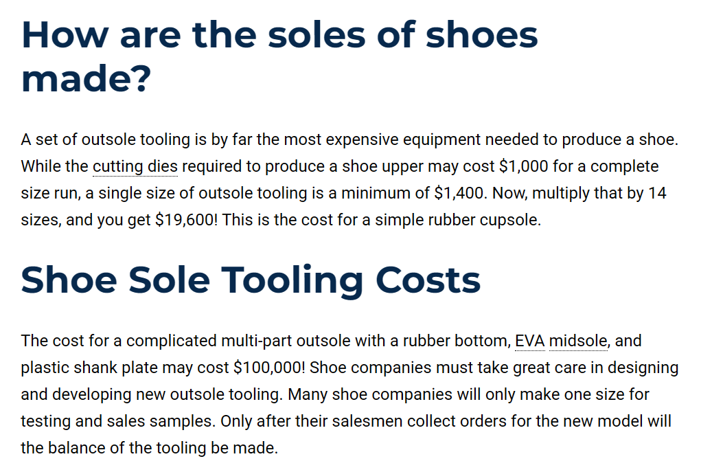 >>1960247 Не позорься, говно. >который вручную отшивает и отливает подошву Справедливо для всей обуви на планете, кроме носков с подошвой. Роботы пока ещё не начали заменять чучмечек для фиксации заготовки на станке.