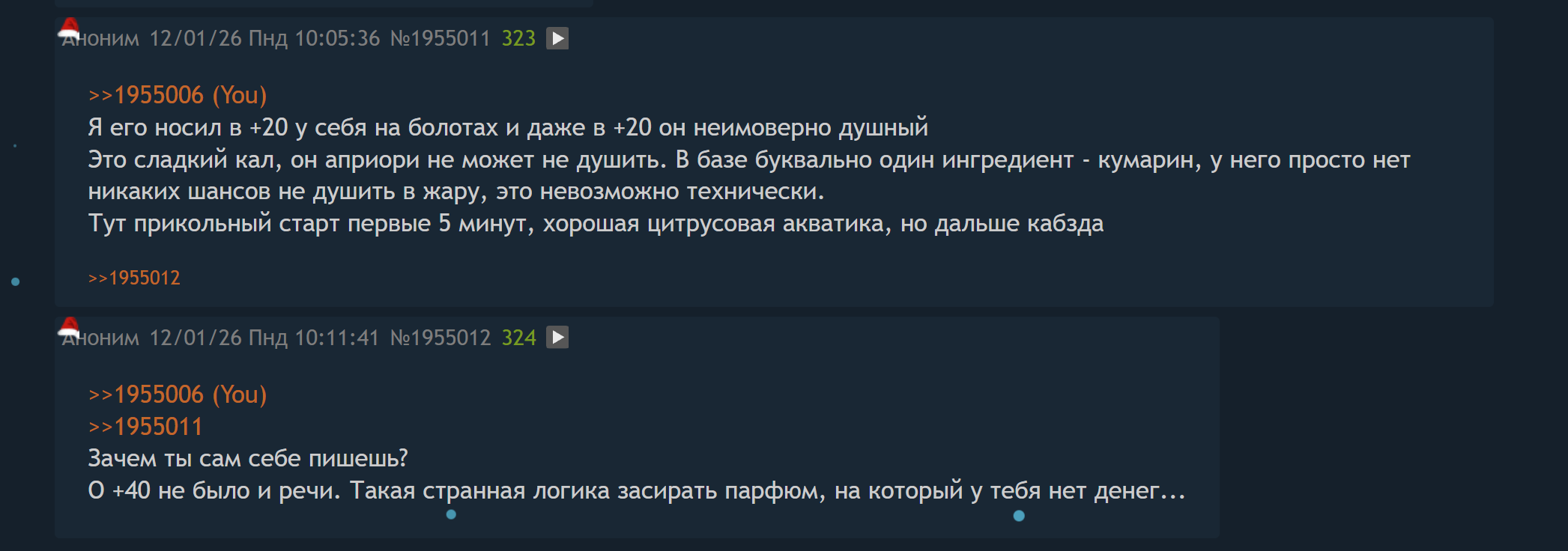 >>1955006 Я его носил в +20 у себя на болотах и даже в +20 он неимоверно душный Это сладкий кал, он априори не может не душить. В базе буквально один ингредиент - кумарин, у него просто нет никаких шансов не душить в жару, это невозможно технически. Тут прикольный старт первые 5 минут, хорошая цитрусовая акватика, но дальше кабзда