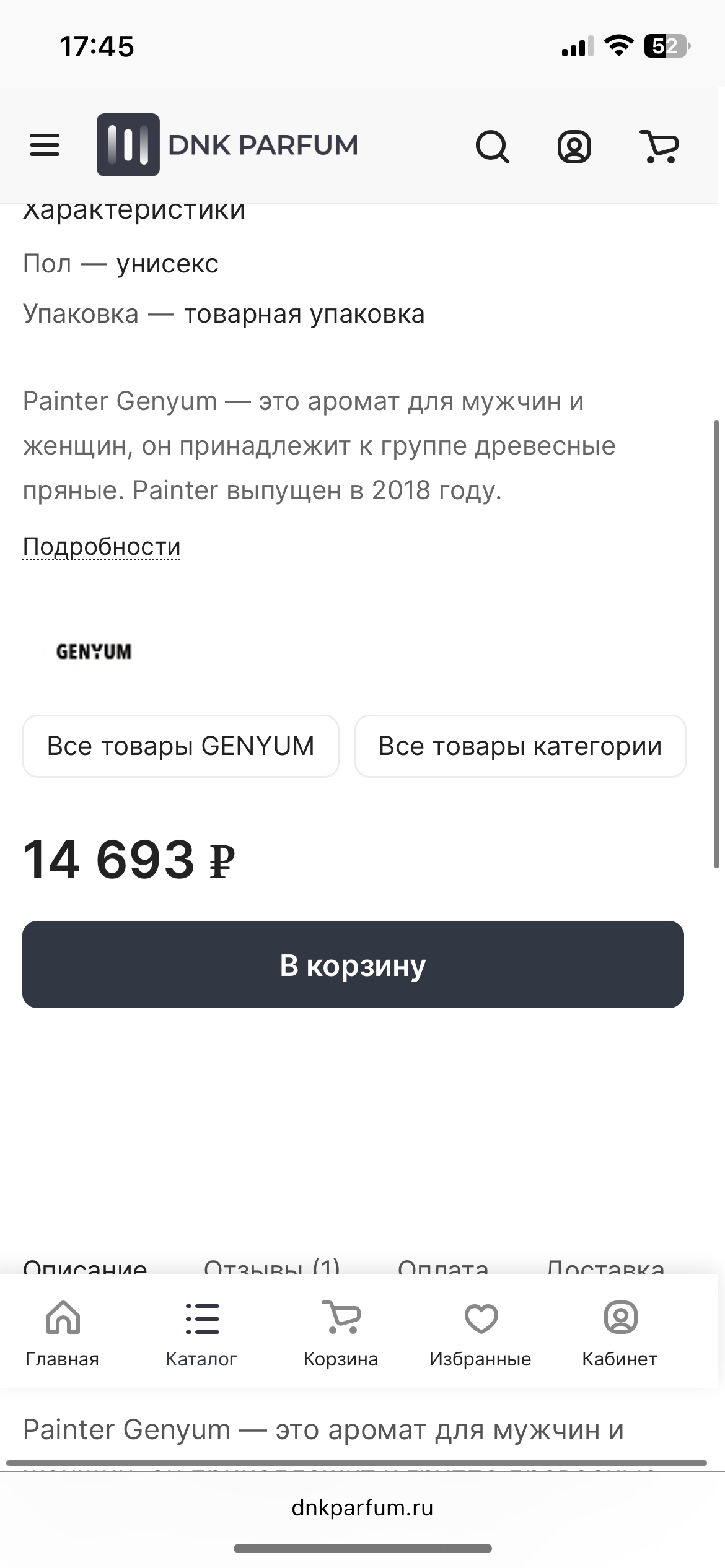 >>1957694 Вот один из нескольких проверенных 100% магазинов, где брал парфюм. Painter - 16к. Это буквально самый низкий ценник, поэтому выбор за тобой.