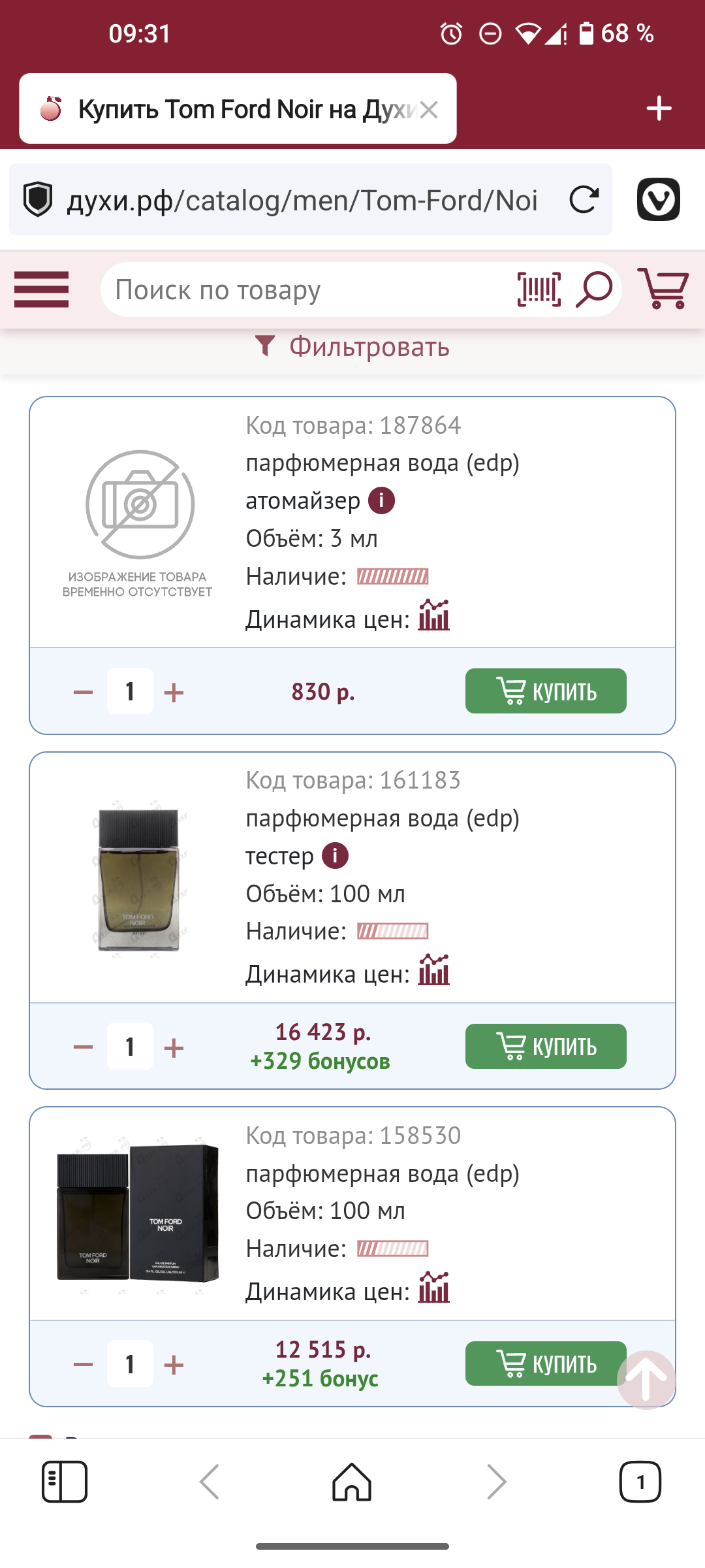 >>1966895 На самом деле таких скидок много, просто надо следить. Вчера на ЯМ был TF Ombre Leather edp 100 мл за 9600 с одинаковой ценой для всех и от самого яндекса, т.е. значит тоже 100% орига. А ведь там тоже есть промокоды и еще можно списать баллы плюса, думаю поймешь что он мне вышел очень дешево.