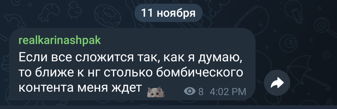 Шпачиха настолько глубоко въелась в мою голову, что уже несколько лет я просто не могу избавиться от мыслей о ней, хотя в самый период её активности в нижнем интернете 18-23 год мне было на нее абсолютно похуй, можно сказать я вообще ничего про неё не знал. Только после того как я открыл для себя тг каналы по нижнему интернету, такие как: Андерграунд, 17 лет на Ютубе, Ебаторщики начал за ней следить, несмотря на то что на данный момент времени она не завозит абсолютно никакого контента. На самом деле у меня не так много каналов в тг на которых у меня стоят уведомления, и канал шпачихи один из них.