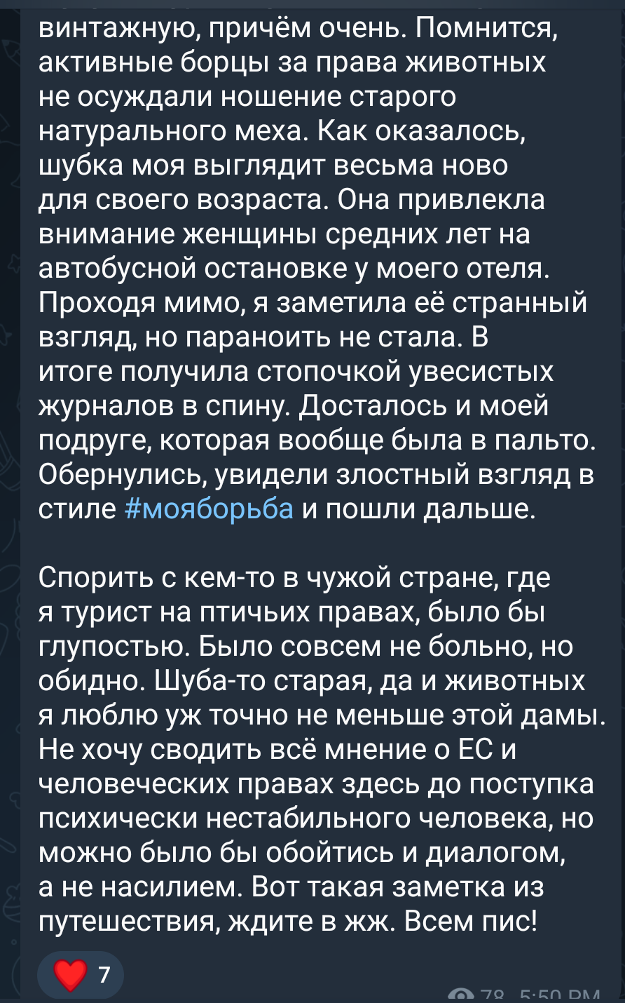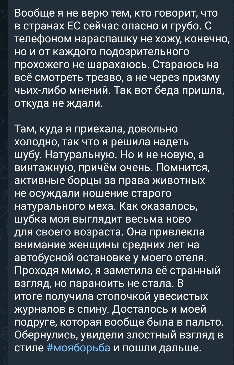 >>25728851 она так решила, значит так и было но по факту ты прав, шпачиха хуйню сморозила, возможно там ничего не было в принципе, или нахамила и не заметила, потому что привыкла всем хамить, за что и огребла. про шубу чушь полная, сколько раз был в своей кожанке, и видел баб в шубах явно натуральных... да дура ёбанная хуйню несёт