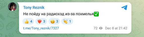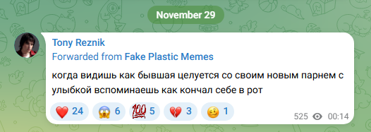 А Тоня Резник походу реально расстался с той девчонкой, с которой изменил летом Шпачихе. Вот посты из ее канала, где в одну и ту же дату она с другим парнем. В это же самое время Резник со Карлиной в своих тгк гиенили с шуток про бывшую девушку, намекая на ту девчулю