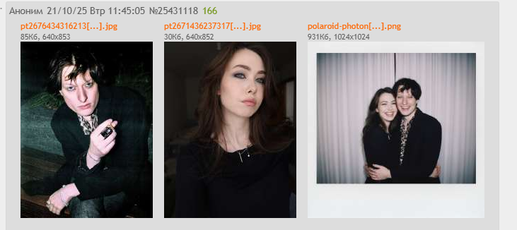 >>25852752 Вы идиоты просто пиздец, Тони полулатентный пидар, у него бывшая трансуха, вы как ебанутые форсите какие-то их придуманные отношения. Это просто ее подружка-гей на выставку зайти и фильмы пообсуждать. Знаю этих двух лично по бывшей тусовке, никакой ебли между ними не было. У Шпачихи, насколько в курсе инсайдов, нихуя никого нет и достаточно давно (из постоянных, за тиндеровичей не шарю), поэтому она круглосуточно тиктоки по бывшим пилит. Расходитесь, мани