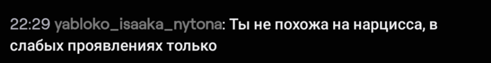 >>25875727 >Знаю этих двух лично по бывшей тусовке, никакой ебли между ними не было Дак а с чего верить твоим словам, тут любой мимокрокодил может написать что-то в духе "я знаю инсайд..." и понеслась. Просто пока что факты доказывают обратное, в мае месяце Шпак и Резник вместе затусили, Карлинка светилась от щастья и снимала тиктоки про влюбленность и отношаш, да и Тоня выдавал недвусмысленные намеки по типу пикрил. А потом к концу лета они по всей видимости разошлись, и пошли грустные тиктапки от Шпак про измену и изменщика. И только перед недавним концертом Рэдиохед они снова стали общаться. И еще, если это "просто дружба", что мешало Шпак на летнем стриме сказать, что Резник ее просто друг, когда ее то ли в чате, то ли в донате спросили, а она молча проигнорила, как и все вопросы про личную жизь. Хотя по ведению ее тикток аккаунта можно просто летопись вести, когда Каришка влюбилась, когда рассталась, когда в депрессии и все такое, ибо это выглядит более реалистичным, чем подобные инсайды от мимокроков.