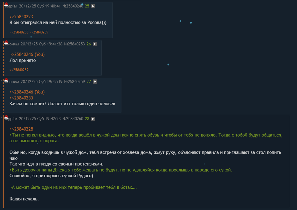 >>25979612 > Господи блять, а додуматься, что пизда может соврать, не? Погоди, то есть рандомная пизда написала Коле Носову представилась девушкой маргинала и он с ней стримил три раза, а потом после просьбы специально удалил стрим? Думаешь Росов настолько тупой? > Потому что Росов не пиздабол, и не притворяется дохуя поцреотом и ЗА НАШИХ!!! Получается Жмилевский был прав, когда Носова гнилью назвал? > Они могли давно расстаться, а модеры попросту продолжают форс, не? Какой же ты залётный. Тред под полным контролем нейросети и одного шизофреника. Найди перекаты от 2023 или 22 года, где тред катился ровно спустя секунду после бамплимита. Там два или три живых постера, а из треда в тред постяться одни и же картинки. Ты можешь капнуть в эру фага 21 годагде после постинга девочки Кати кидалась фотка бабы из айспика или какой-то школьницы с фоткой монстра, после уход в хрю тактика изменилась. На любой пост про Катю крутят раги и называют постера хохлом модером.