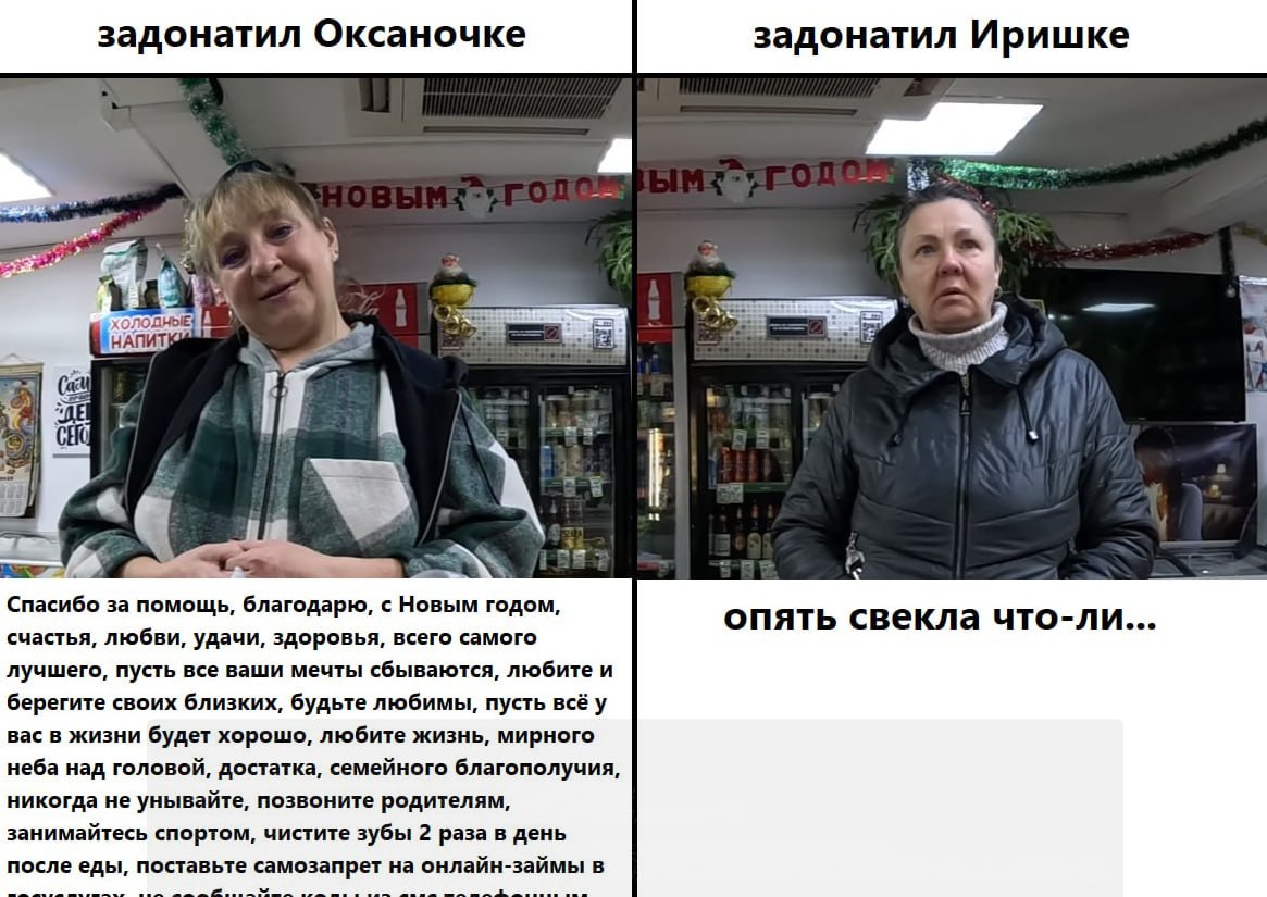 https://youtu.be/gm9bFMfSOJM хроновости 19.01.2026 - котята объедают Сиплого - труд превращает Сиплого в человека - Семён перешёл в касту обиженных, чтобы не отдавать долг за водку - новогодняя сказка в посёлке: жители дарят алкашам коньяк, икру, сигареты, деньги - у Соломы вторая стадия запоя — торг - поучительная история жизни Жеки Грача: потерял всё из-за сынки, все бушавшие ревостники уже в земле - бутылка розового вина и новогодняя ночь с Светой или баклажа дусиной палёнки и новогодняя ночь с Маринкой — что выберет Солома? - донатиус после запоюса. Маринус послана на хуюс донаторы победили: Иришка уже смотреть не может на свеклу - Олин подарок Иришке сос мыслом - новогоднее чудо: Маринка угощает всех дорогими сигаретами - в ответ на Маринкино поздравление сын-наркоман послал её на хуй - умер щедрый спонсор Маринки и Сиплого - Оксана поздравляет папищеков и благодарит за всё
