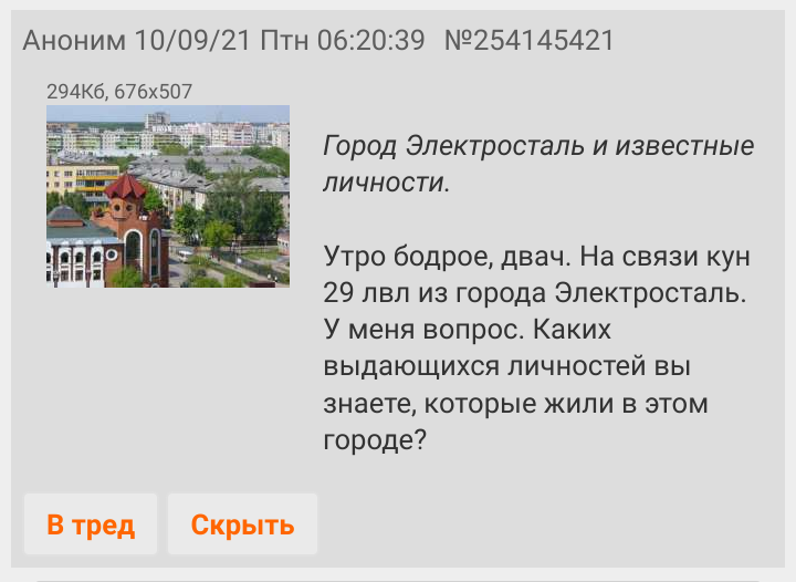 Ведите себя в треде вежливо. Обсуждение остальных фэндомных персонажей города Электросталь приветствуется.