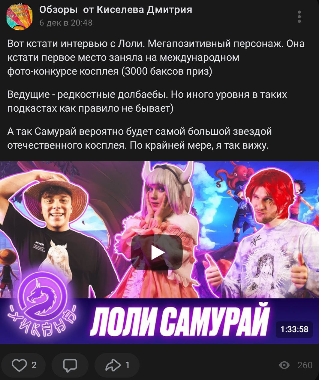 А вообще ирония дикая, лоля делает обий косплей с сиськосплейщицей, которая потом выкладывает свою часть образа с меньшим числом одежды, при том сама лоля вся из себя целомудренная. Мб это пройдёт.