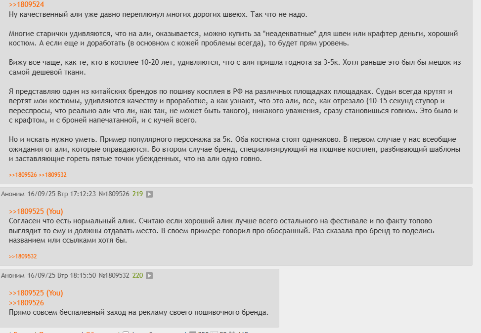 А если автор темы так топит за нормальных, кто за косплей, а не за торговлю жопой, то что же ты не создал доски тех, кто в Китай уехал и больше в РФ не светит или офицального косплеера бензопилы от японского издательства, которые ее туда каждый год по два раза катают на съемки? Потому что ты нихуяшеньки не знаешь и чисто сообщество поверхностно видел или затупил и повелся на маркениг от Хаку, что она одна такая, а их дохуя, но она одна, кто пиарит это