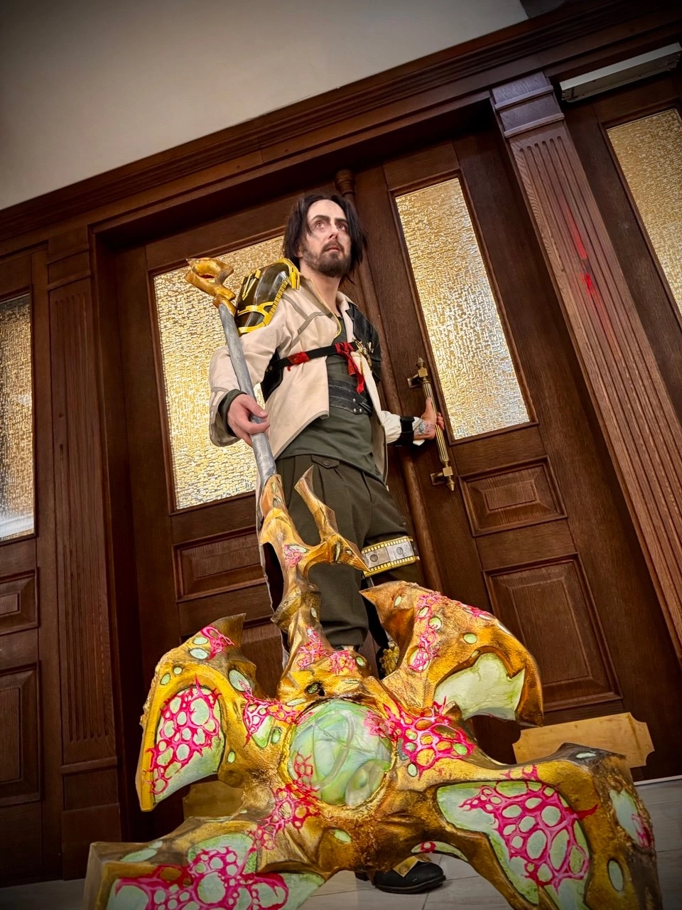 >>1810596 Ой блядь: обычная палка с обмоткой посередине никак не загрунтована/покрашена, волосы из под парика вылезли и парик без нормальной линии роста волос.