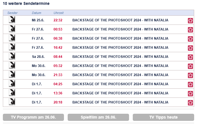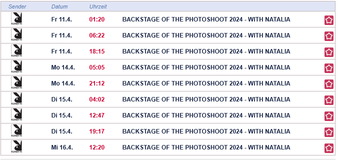 В российском вещании Наталии нет вообще и там, по странному совпадению, все две недели идёт передача backstage with Kima. Может ли у нашего канала более достоверное расписание, чем у европейского? Хуй знает.