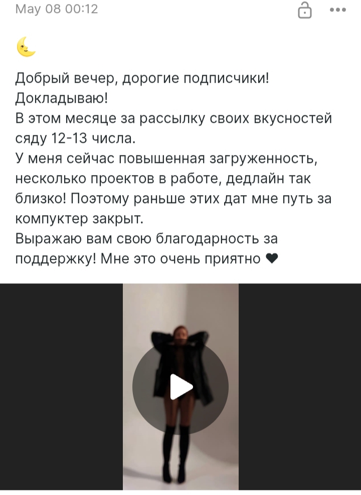 И на её бусти никаких сообщений с начала месяца, даже про то, что сеты задерживаются
