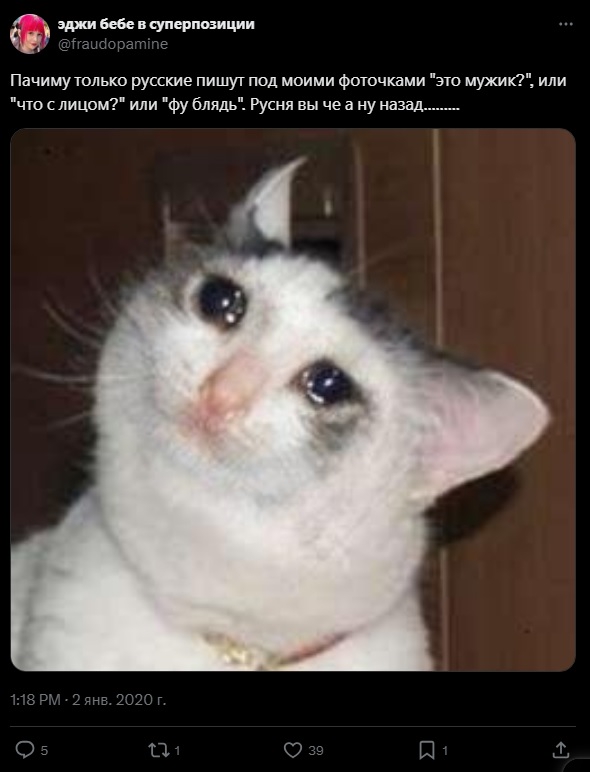 >>1804088 >Если пострадавшие обратятся в органы Nyet Как мы знаем, пострадавшие лучше будут анонимно писать хуйню в интернете, вместо обращения в компетентные органы.
