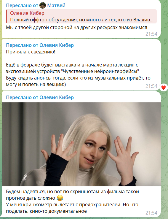 Оливка говорила что испытывает только на кунах, приезжала к Аргонову, пролезла в группу и лошара Аргонов даже не примерил ее киберкостюм? А он точно трансгуманист? ВоКАЛистка не смогла прислать маэстро спасение его от заплывания жиром?