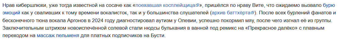 Олия вышла на финишную прямую по унижению приморского наркомана Виктора Аргонова и отжимания его тврчества себе, прислав на сайт по самовосхвалению https://muzwi.ru/artist/oleviia-kiber следующий текст:
