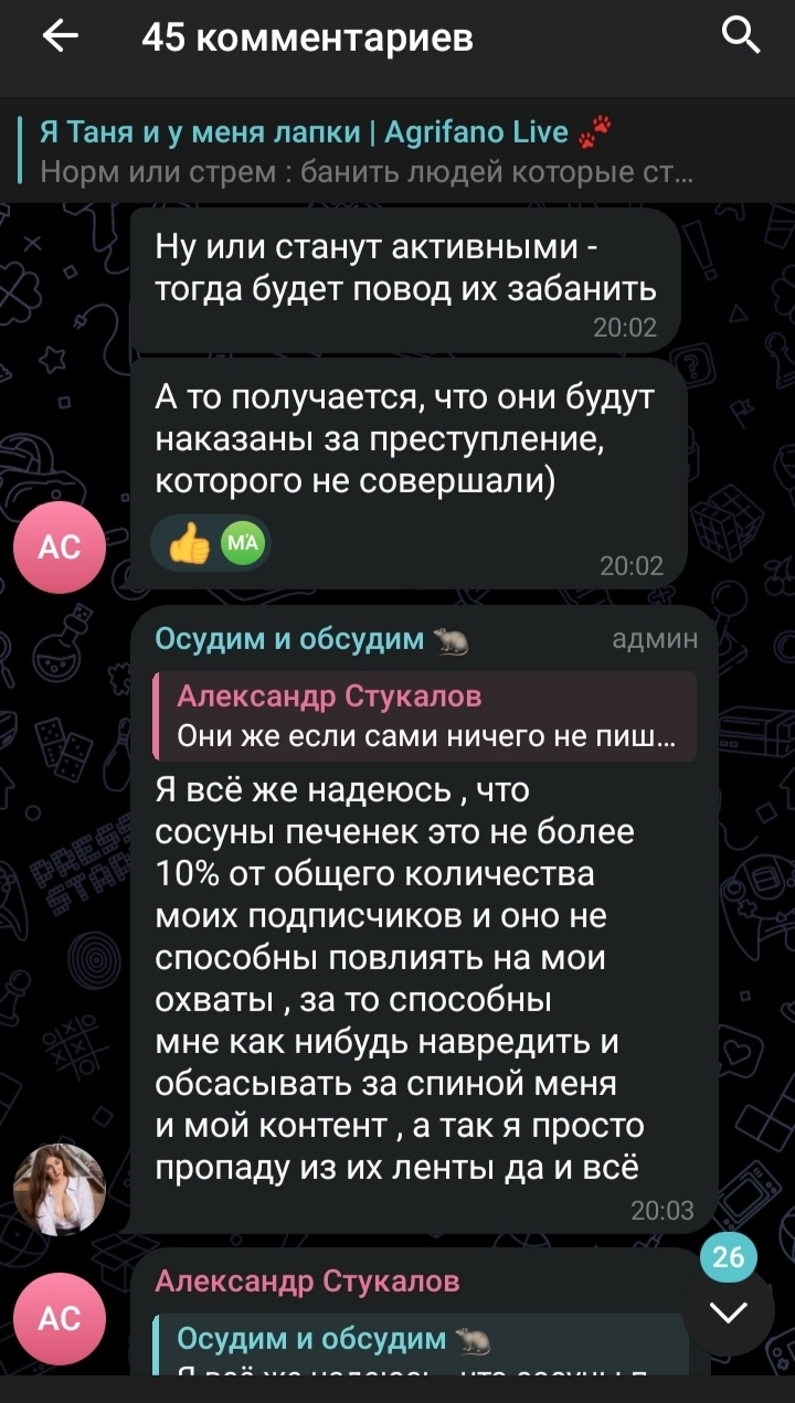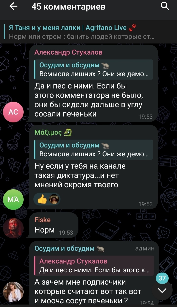 У Буренки все больше поводов добавлять людей в ЧС. За лайк негативного комментария в её сторону - ЧС