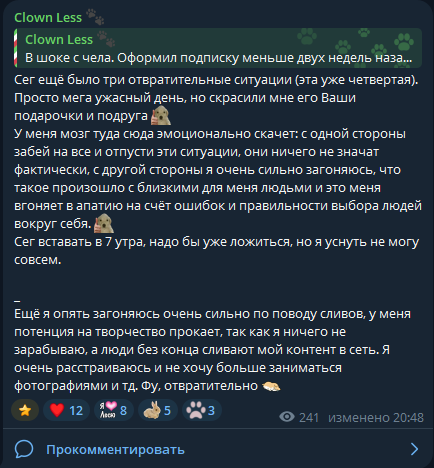 Но вообще смешно. Сливают контент у всех и всегда. Если не сливают - значит ты никому нахуй не нужна. В любом случае у тебя останется верная стадия пиздолизов, которые будут нести монетку в надежде на сисик и писик лол