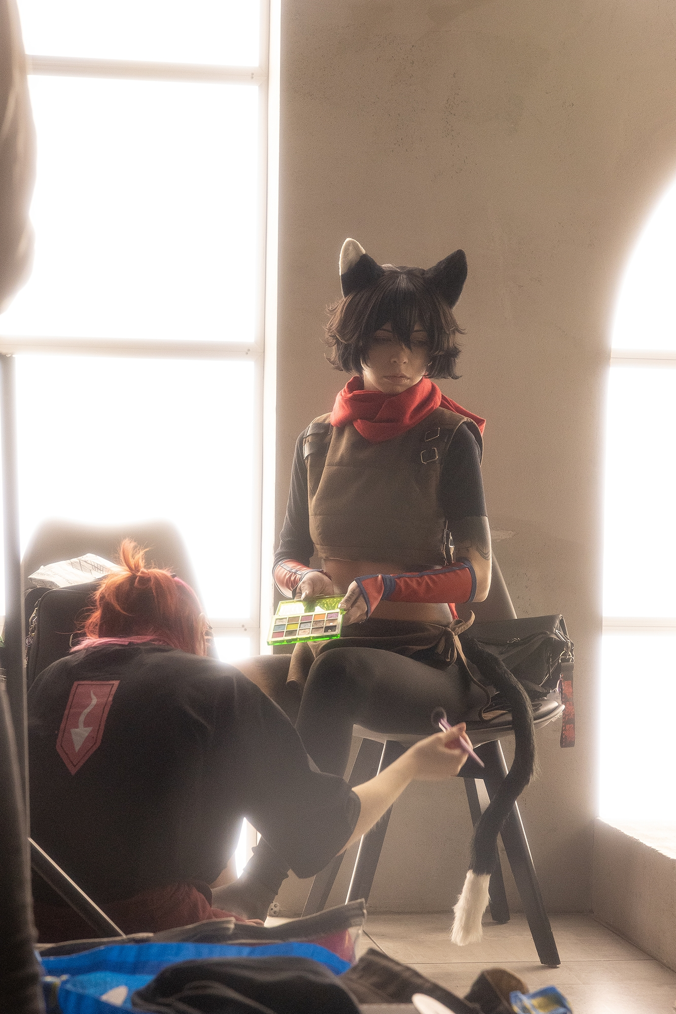 Парик весь в говно растрепан, потому что нужно придать натуральность воительнице, а не потому что лень было расчесать 1-2 минуты (в студии ветра нет, чтобы он после растрепался за два порыва).
