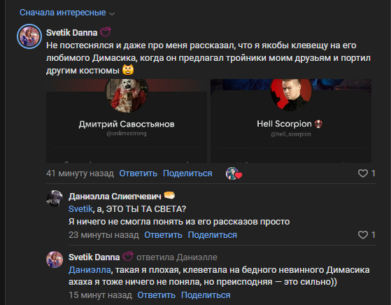 >Ты поддувала форс про педофилию публично, зная, что пруфов нет - а тебе они и не нужны. Тебе тред про савостьянова хочется новый? Можно просто сказать "хочу тред" знаешь Очень удбная обвинительная позиция - пруфы принеси, в залупу сама не лезь че еще сделать надо?