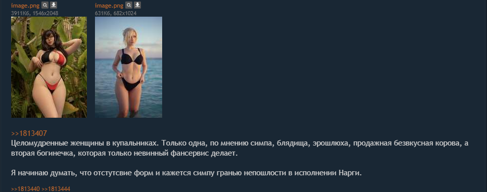 И повторять до бесконечности, т.к. вкусовщина самый тупой аргумент. Тут многие писали, что все заебок с ней, но тут и тут проколчик, для косплеера даже хорошего норм, но для иконы проеб недопустимый. И начинался свиной визг.