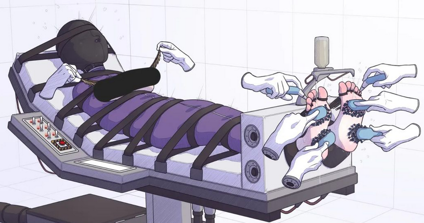 Интересен стоящий за ним сюжет. Допрос команды юных хакеров? Наказание старшеклассников за неуспеваемость? Или же группа друзей устроила себе такой мальчишник в поиске острых ощущений? Внимание к деталям типа индивидуальной заметки на планшете медсестры-щекотательницы радует глаз. Очевидно, что она успела, так сказать, поработать отдельно с каждым пленником и выработать оптимальную тактику для каждого же. Кому чесать своды ступней ногтями, а кому едва касаясь водить кончиками пальцев по всей поверхности подошв, параллельно шепча на ухо, какой он щекотливый мальчик с мягкими пяточками.
