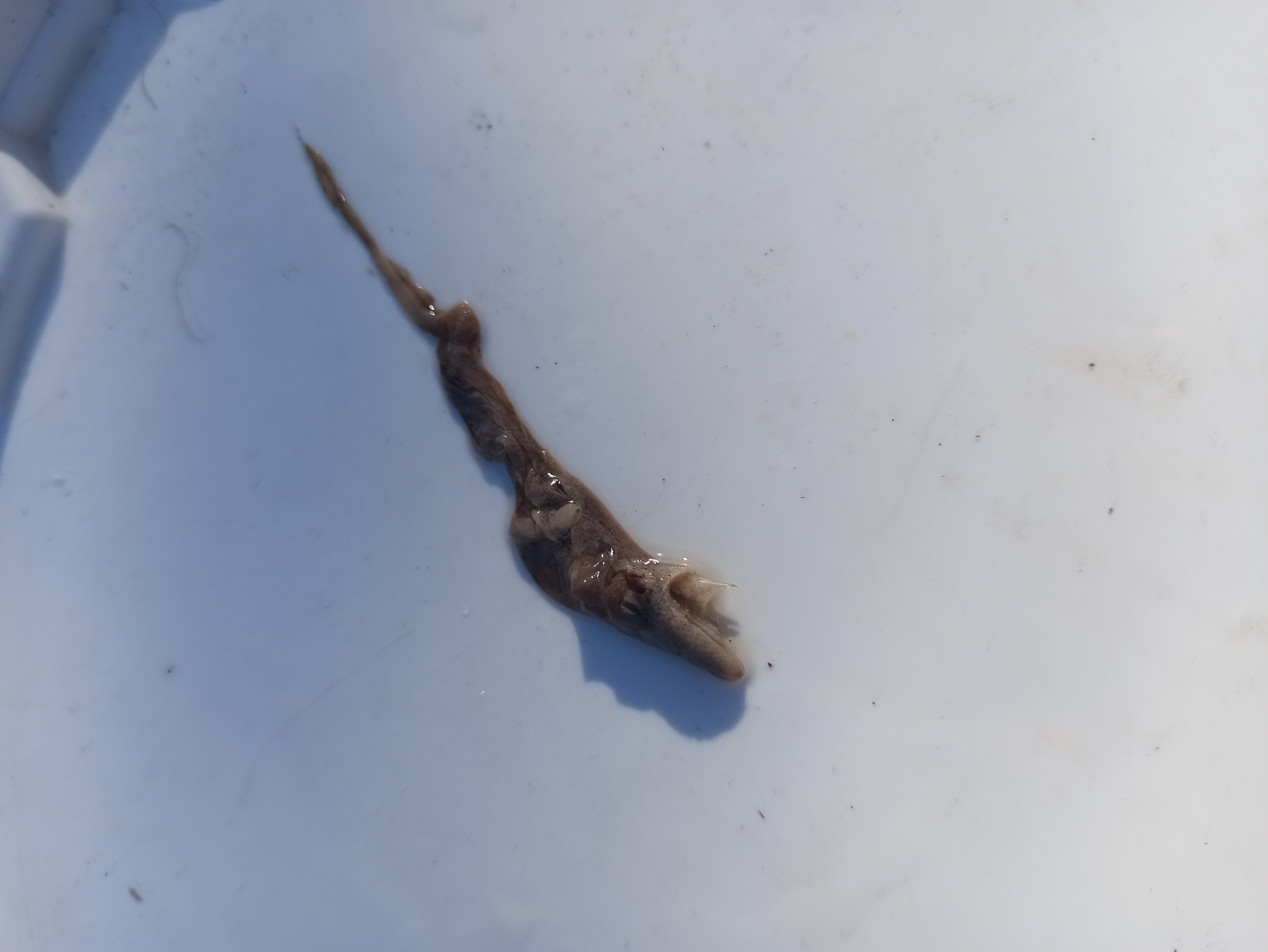 Чё это за хуйня ананасики? Озерный амогус? Попала в сетку неведомая поебень, не смогли понять что за тварь, похожа на переваренную другой рыбкой рыбку, но хуй знает челюсть странная