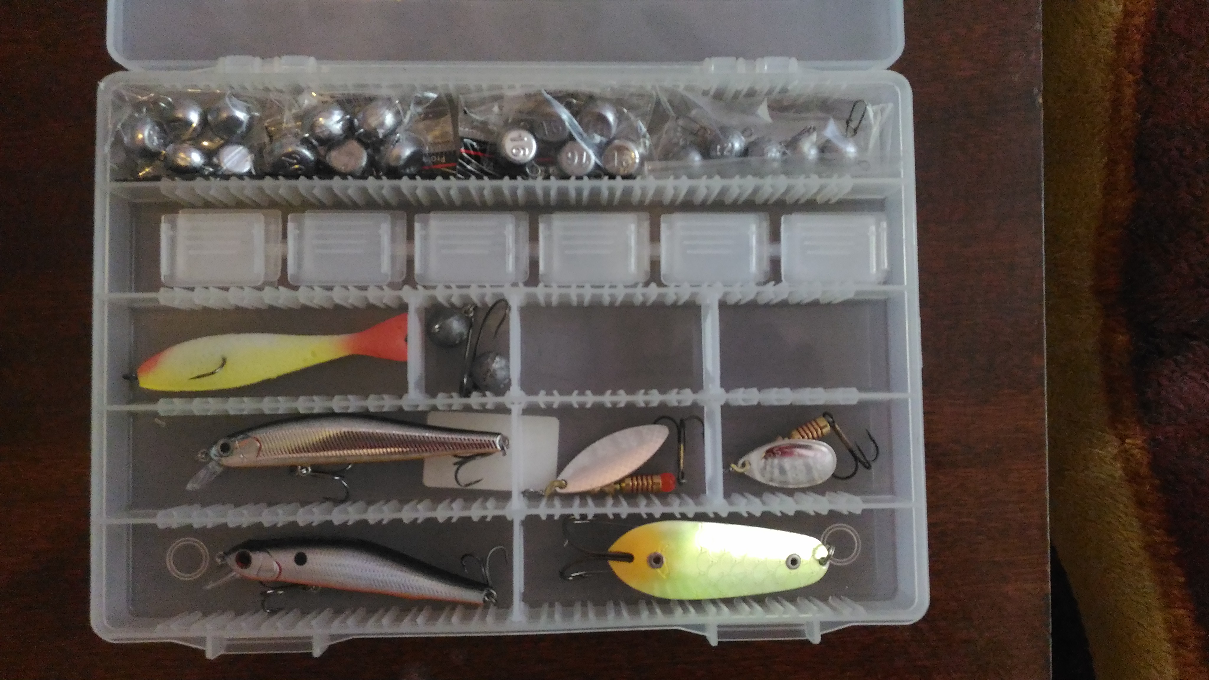 Наконец-то купил воблерков, блёсенок, коробочку и всё облагородил, теперь не буду таскать нажитое в одной куче. Сижу и умиляюсь да я же прям как настоящий рыбак, жаль только не поймал пока нифига, лол