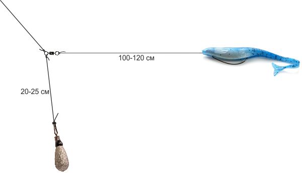 сделал из двойника на который одел тело тиоги 2" у которой хвост отгрызли, лепесток от вертухи единички на вертлюге без заводного кольца, все это на чебурахе 4гр.