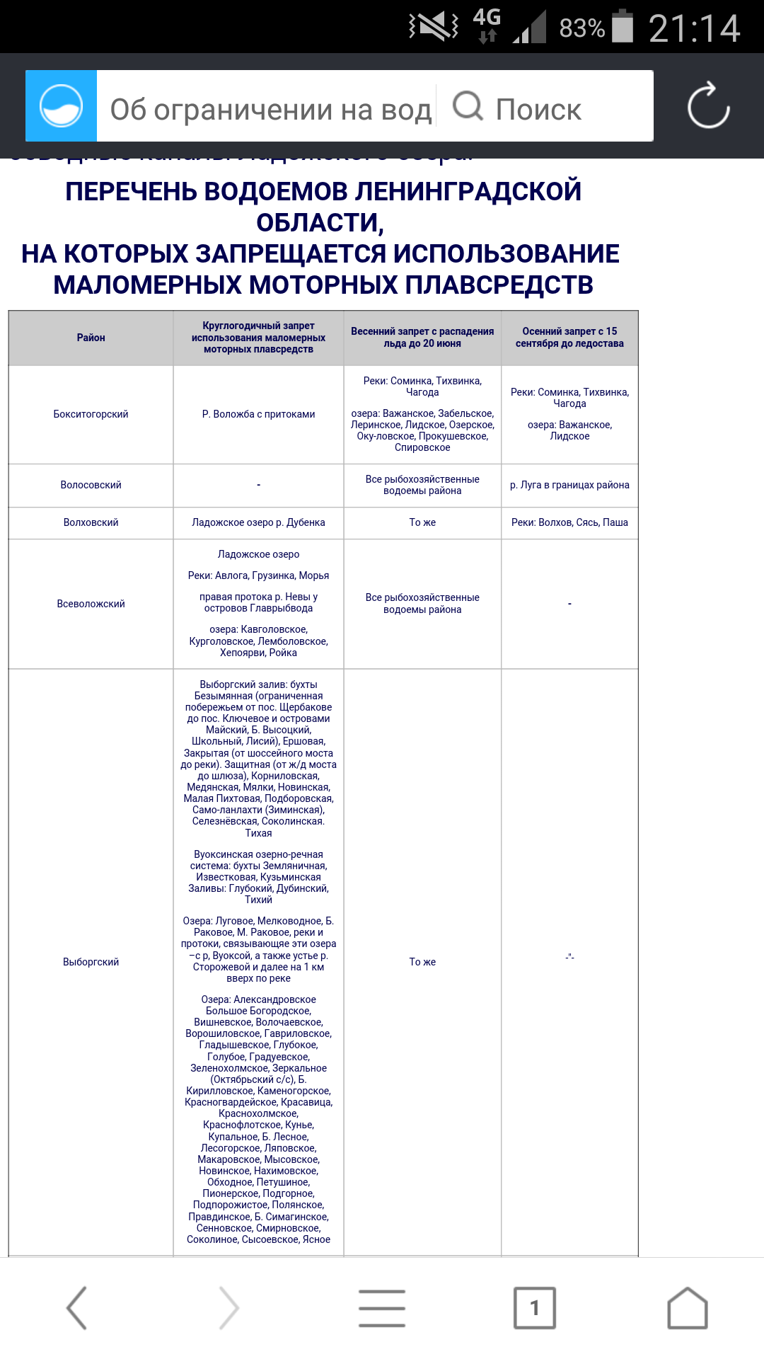>>12132 > Кстати где бензиновые то запрещены? Приведи пример хоть, это наверно мелкие озера? Пикрелейтед. И только в Выборгском топливные моторы круглый год запрещены почти на всех ключевых водоёмах. В Приозерском зато демократично. Впрочем, мне похуй, у меня нет мотора.