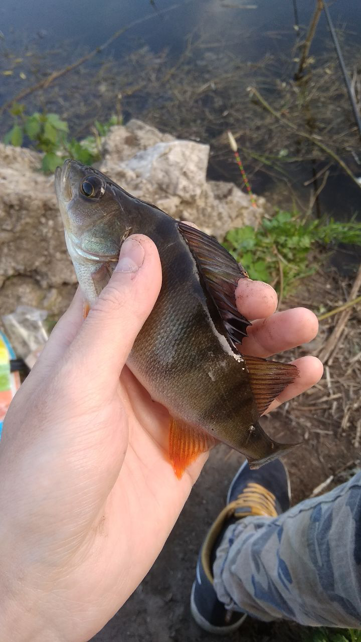 Сходил на пару часов перед РАБотой на пруды, окунь поклёвывал. Попался мелкий, я его снарядил как живца и тут же он был съеден крупным кокунем. Остальные на червя попались. И ещё один хороший оторвал под берегом крючок и съебался.